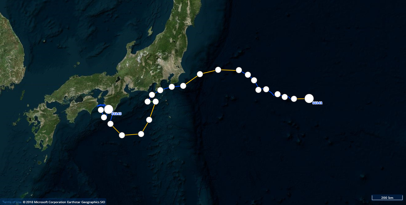 発信機付きウミガメ位置情報2018年12月21日うめみかん