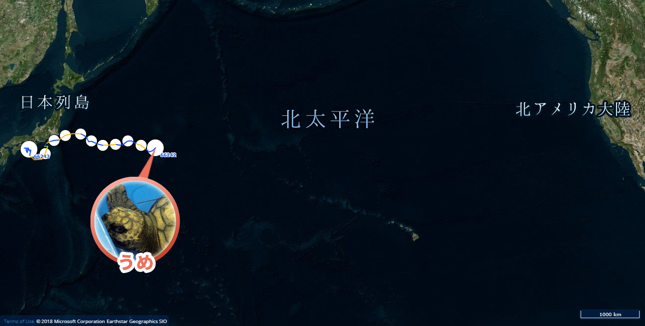 発信機付きウミガメ位置情報2019年1月2日うめみかん