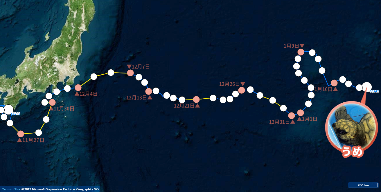 発信機付きウミガメ位置情報2019年1月22日うめみかん