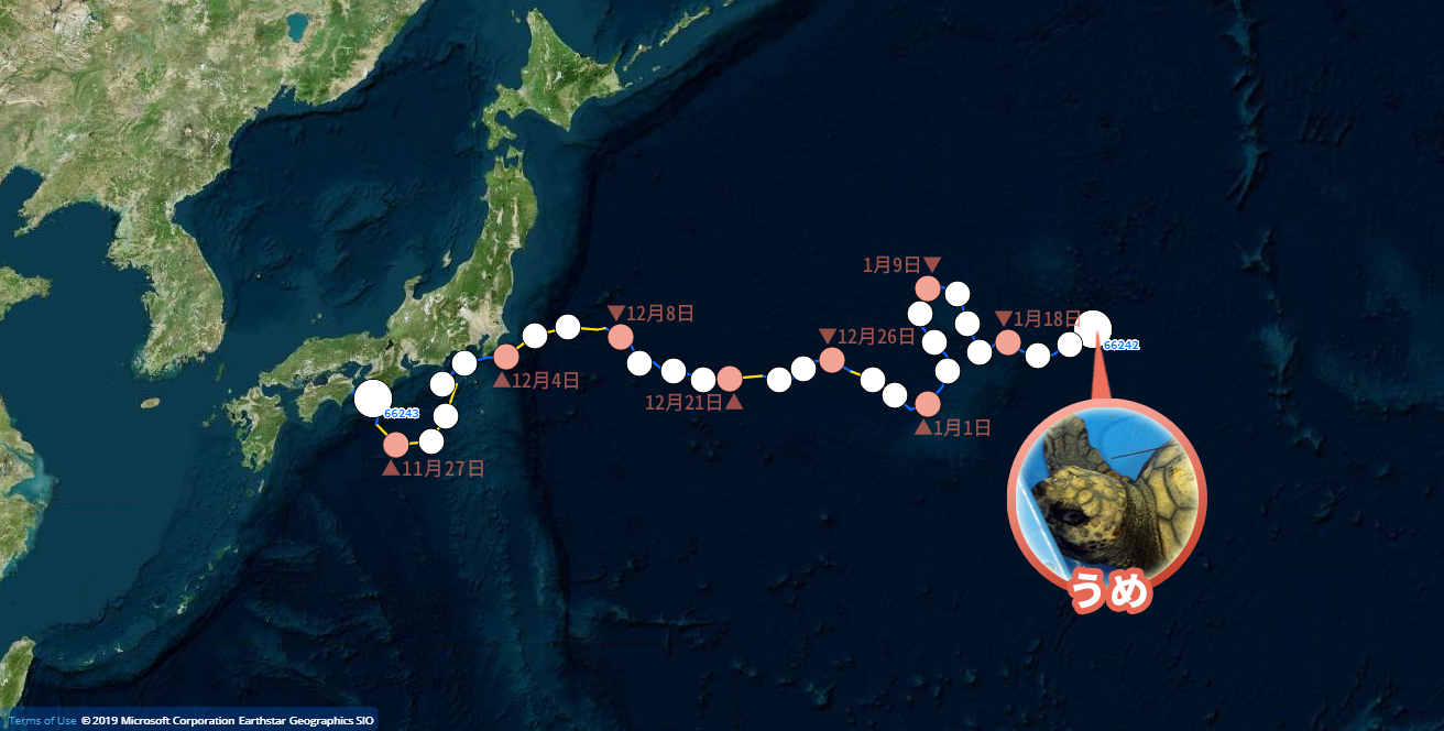発信機付きウミガメ位置情報2019年1月27日うめみかん