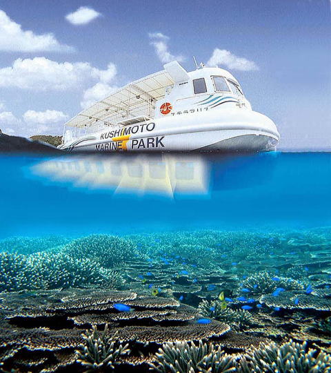 乘上半潛水艇型的海中觀光船“Stella Maris”、您可以從船上那寬幅的觀覽窗上,像搭乘潛水艇一樣觀賞海中景觀,近距離地看到臺型珊瑚的大群落和彩色鮮豔的魚類。