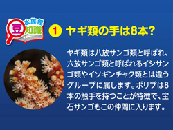 柳珊瑚類稱為八放珊瑚類,和稱為六放珊瑚類的石珊瑚類與海葵屬於不同族群。有8隻觸手為其特徵,寶石珊瑚也是其同類。