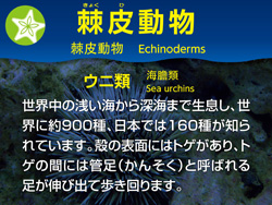 海膽類的腳前端呈吸盤狀,非常光滑可在玻璃上自由走動。其腳部可自由伸縮,不論前後左右都可順利移動。