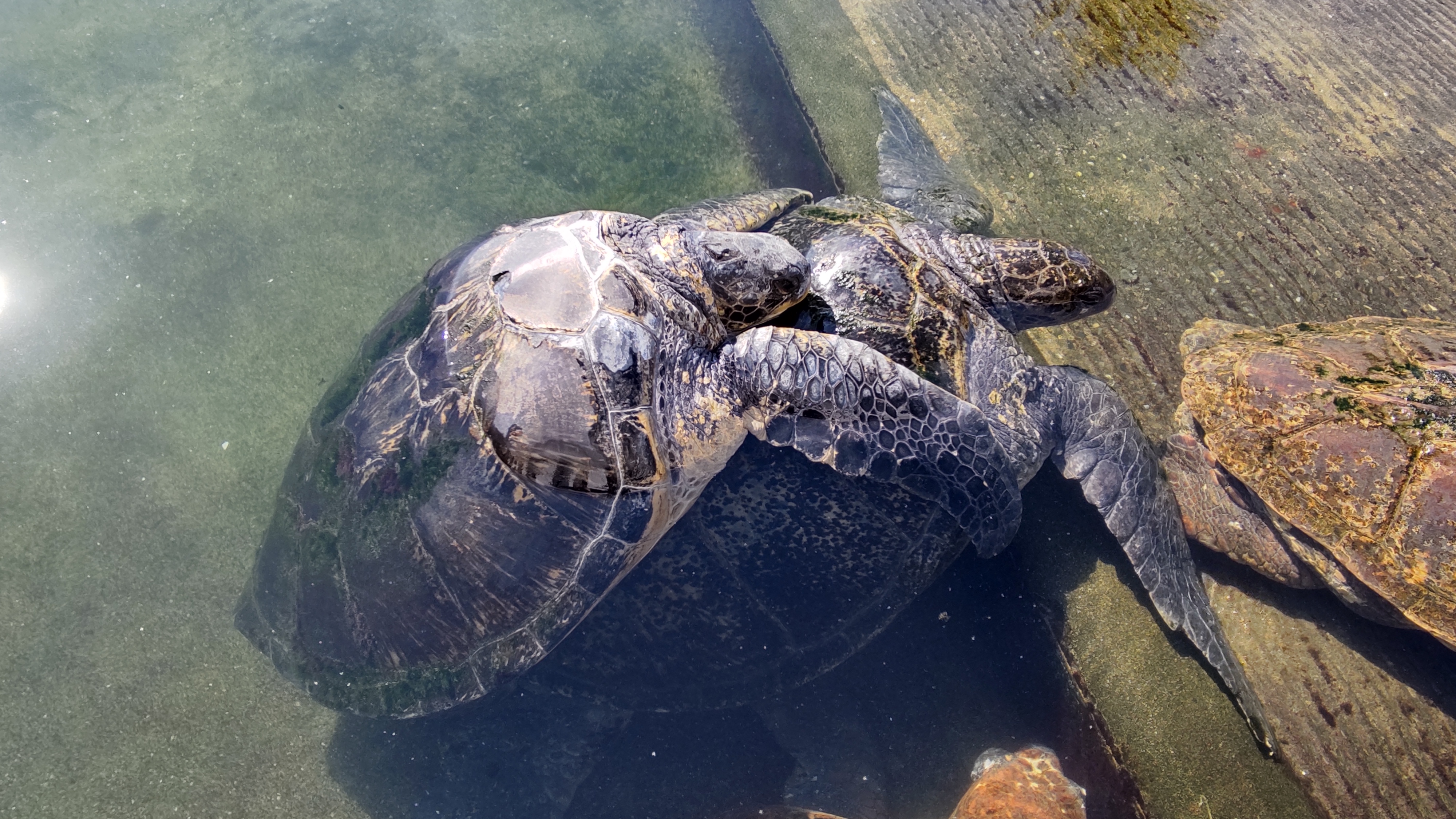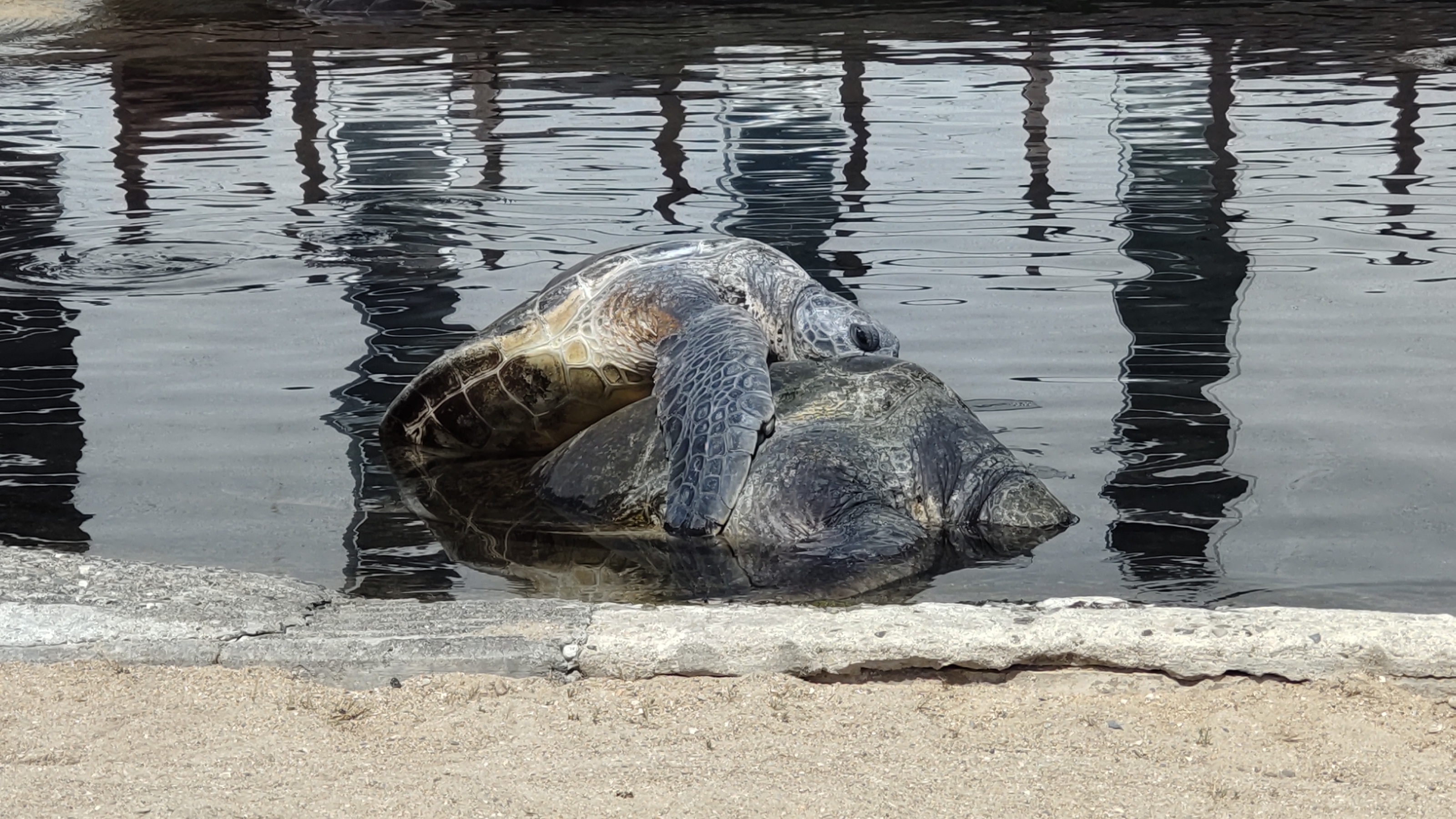 ちなみに、ウミガメプールにはアカウミガメもおり、当然こちらも交尾をしますが、