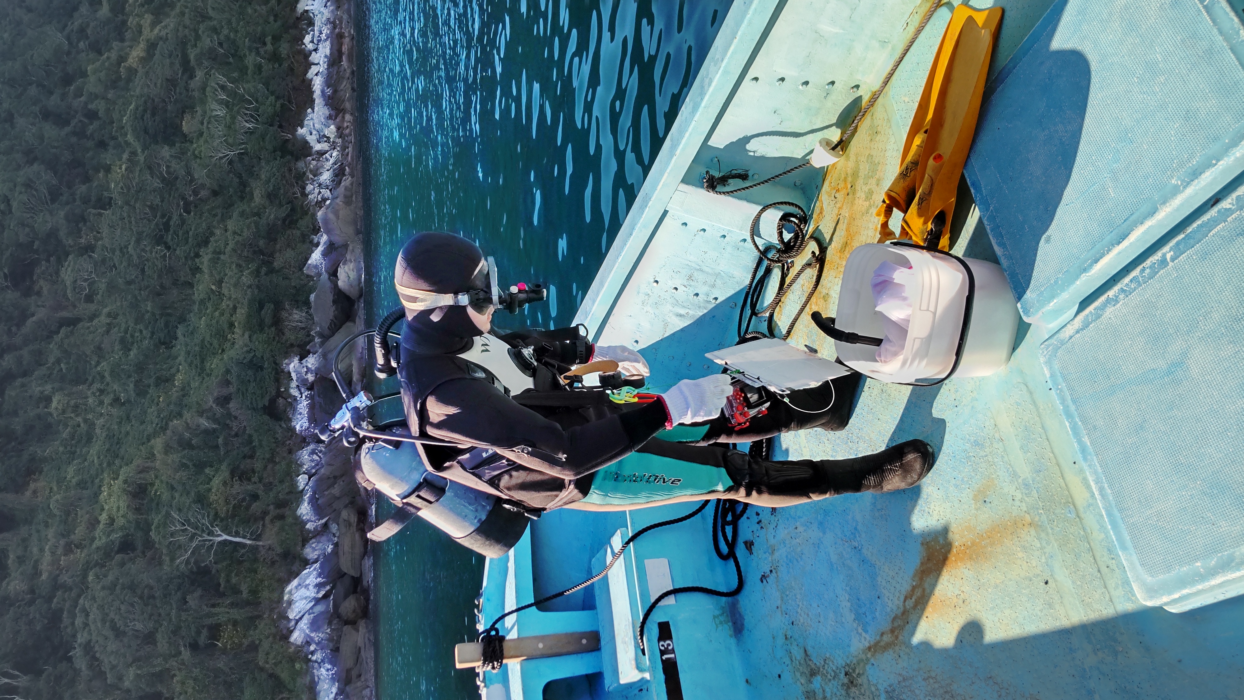 また、調査地点まで行くのに船が必要なことが多いので、水族館の船をよく使います。