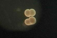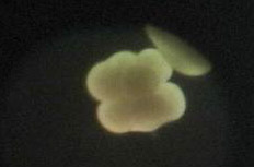 | 直径1mmほどの卵 少しヘコみます | 分割が始まります | |